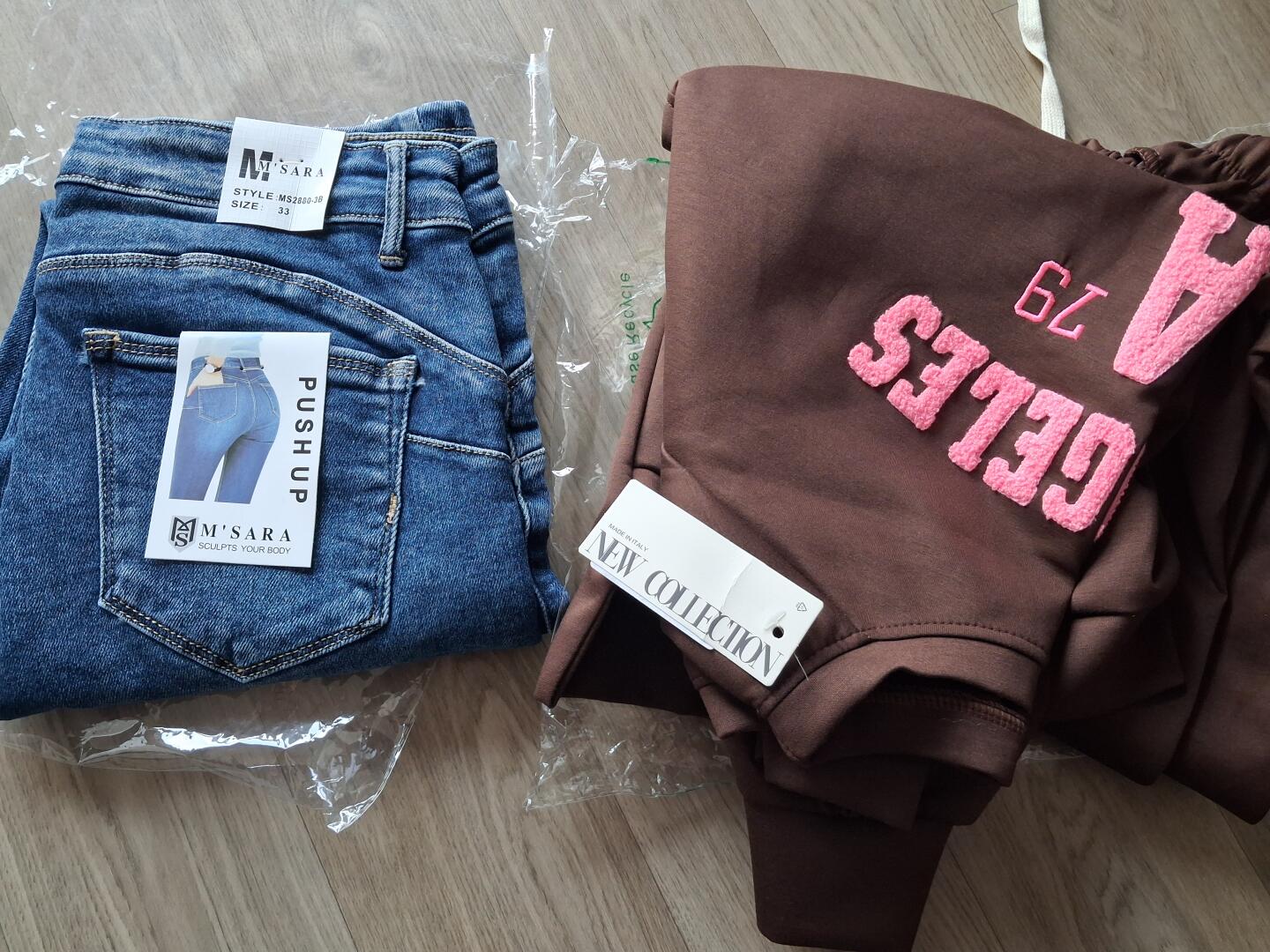 - spodnie jeansowe Push Up M Sara rozmiar 33 (dł. nogawki 97cm, pas na płasko 42cm×2, uciągną się do 50cm×2)