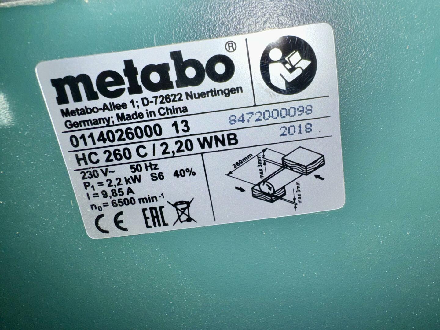 Sprzedam. Strugarka grubościówka Metabo HC 260 C/2,2 WNB, jak nowa, używana kilka godzin, 1 właściciel. Przechowywana w domowym garażu, stan idealny.